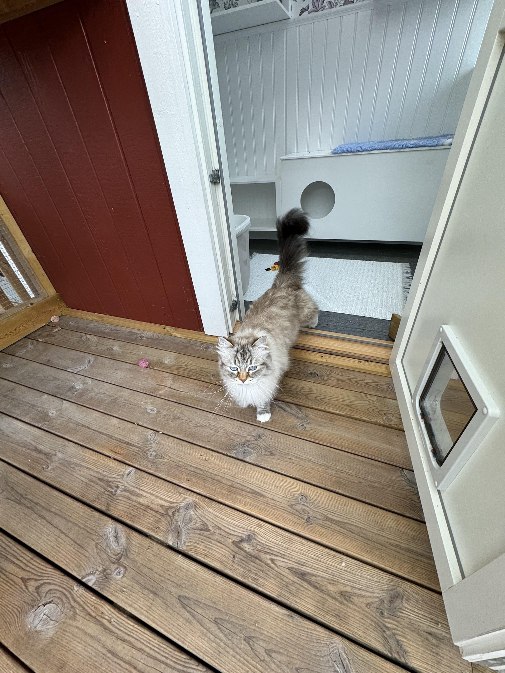 vid gavel, och katterna kan gå in och ut som dom vill. Katthuset och uteplatserna har videoövervakning.