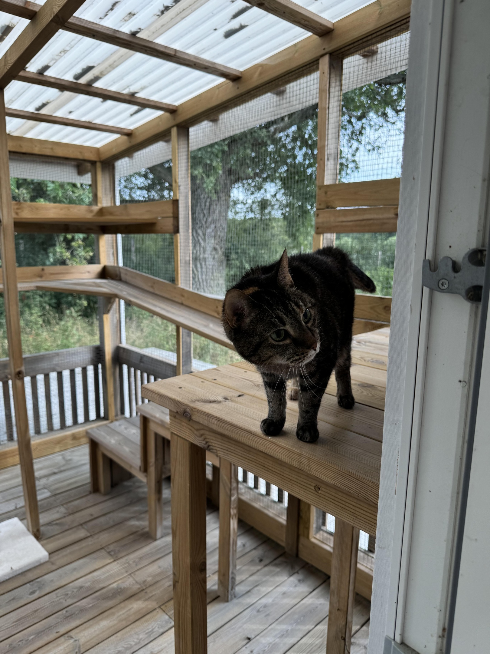 The Cottage bokas med fördel för kattungar, äldre katter och katter med funktionsnedsättning. The Cottage går att boka för vistelse under sommaren.