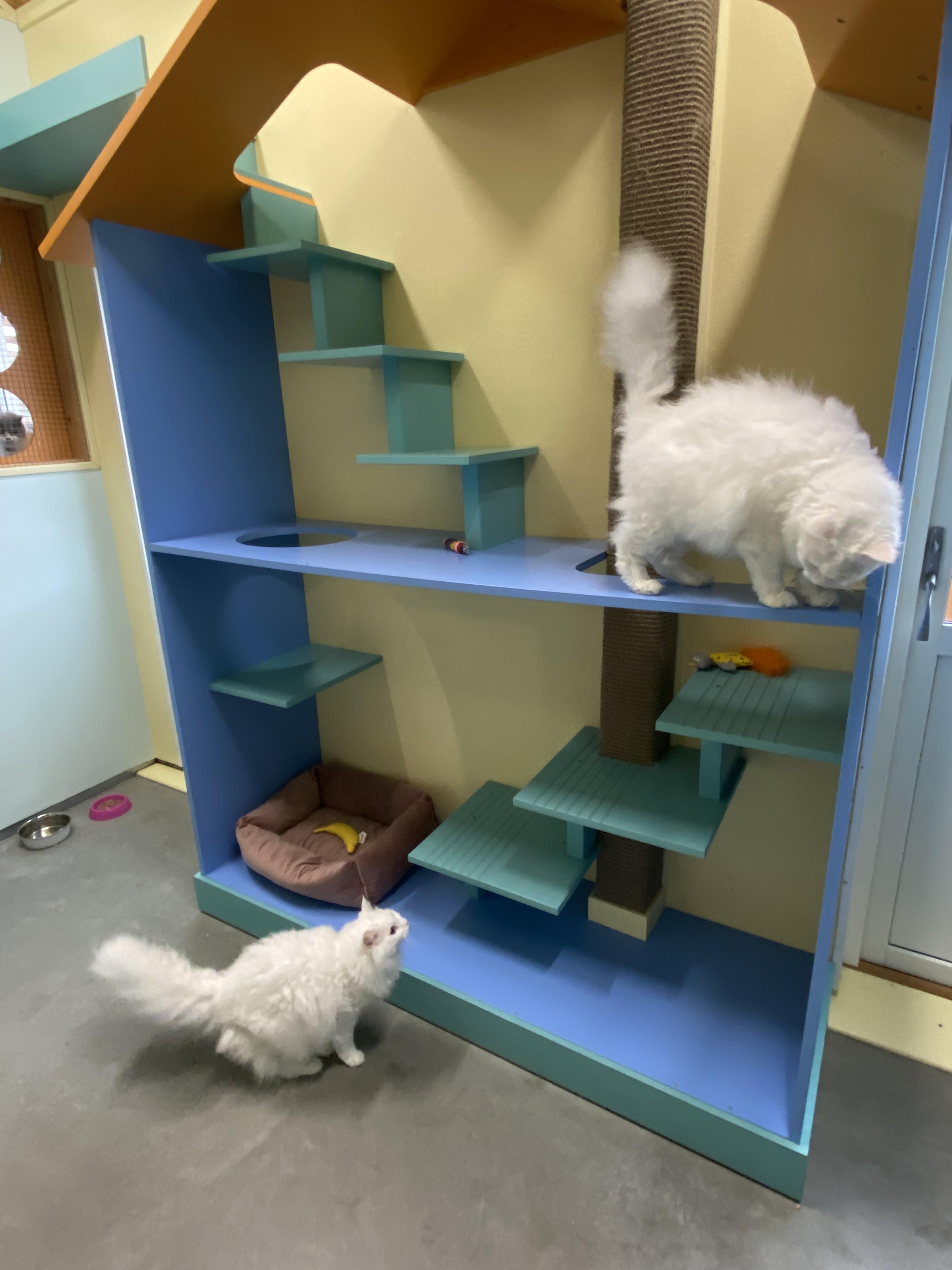 första stora vilovåningen finns en mjuk fäll där katterna vilar