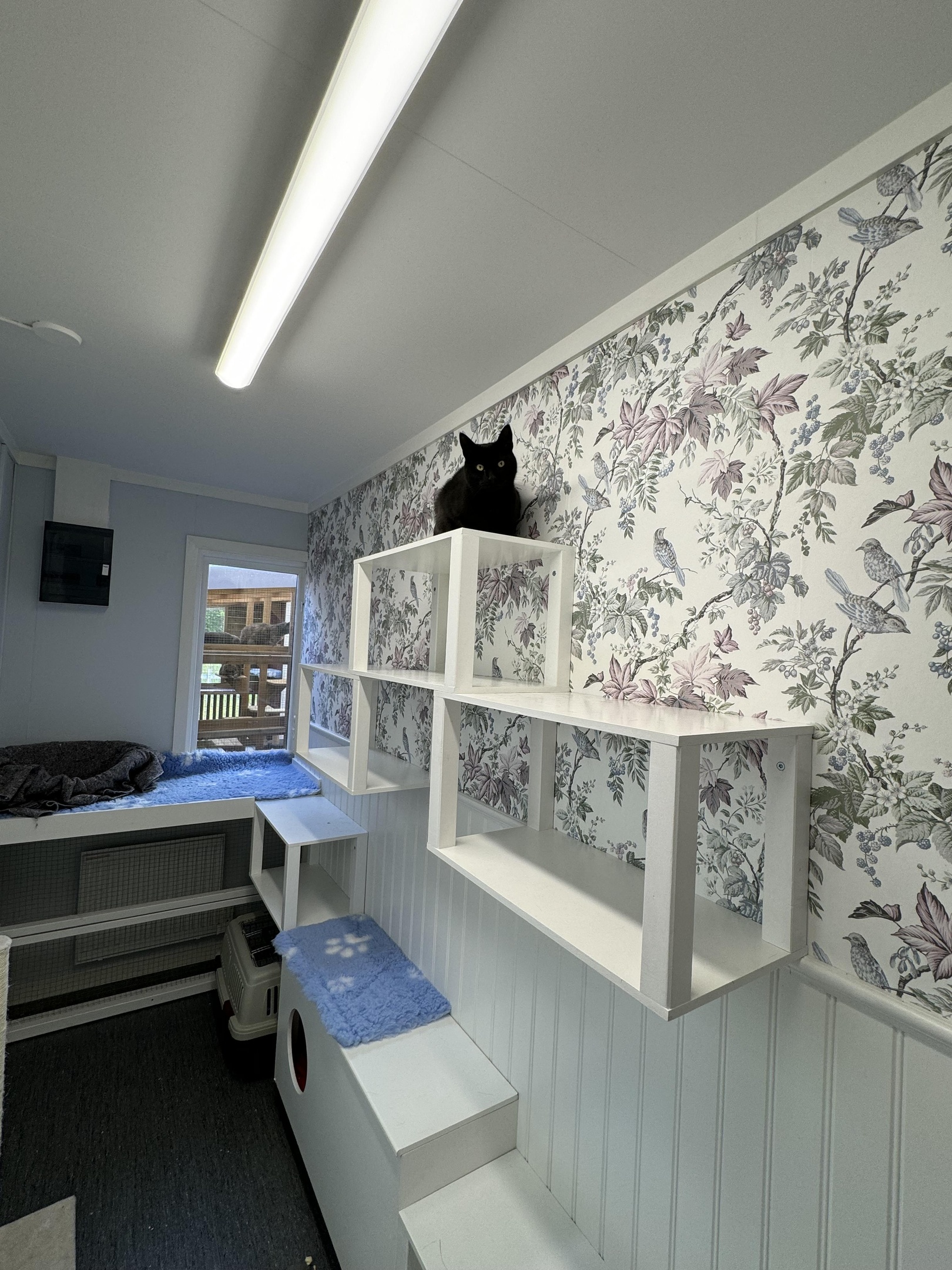 The Cottage bokas med fördel för kattungar, äldre katter och katter med funktionsnedsättning. The Cottage går att boka för vistelse under sommaren.